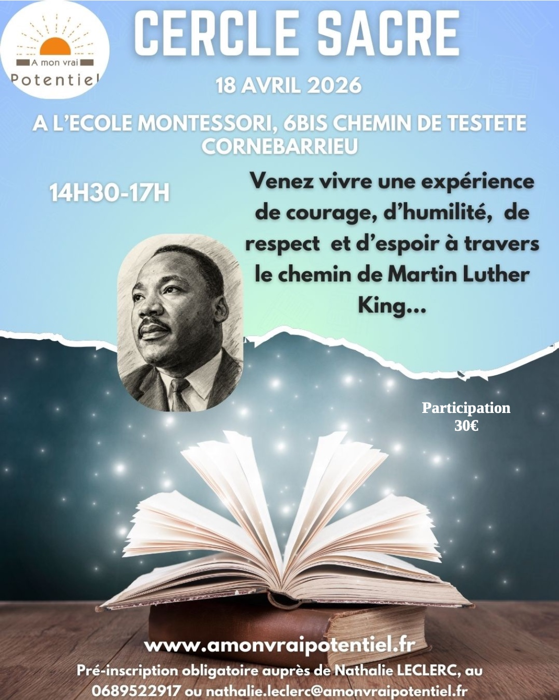 Contactez-moi pour vous inscrire à un événement ou pour toute question. Les places sont limitées !